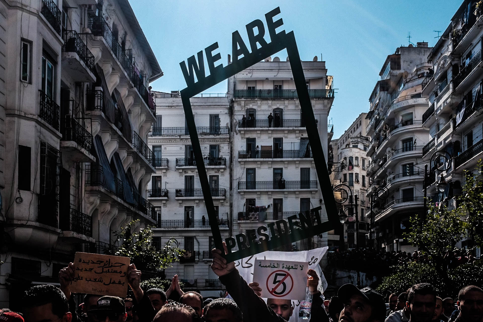 Des familles entières ont manifesté aujourd’hui, nous avons rencontré une maman avec ses quatre filles âgées entre 15 et 28 ans, elles chantaient dansaient et scandaient des slogans contre le 5e mandat de Bouteflika et contre le Premier Ministre Ahmed Ouyahia, tous ces moments de joie ont été filmé par le papa qui chantait lui aussi. Pas loin un autre père de famille marche avec sa fille et lui montre du doigt les différentes personnalités publiques présentes à la manifestation et lui explique les slogans inscrits sur les pancartes. Des couples, des groupes de femmes et des groupes d’amis ont aussi participé a cette marche.