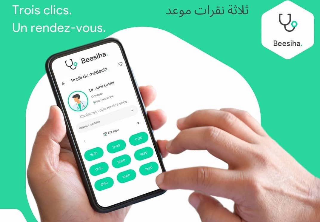 La plateforme baptisée Beesiha, téléchargeable sur GooglePlay et AppStore, « permet aux professionnels de la santé une gestion numérique de la salle d’attente » et favorise également « la prise de rendez-vous effectuée par leurs patients », détaille la Startup.